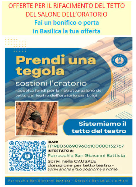 AIUTA LA TUA PARROCCHIA : Codice IBAN: IT 10 F 03069 09606 10000006 2310