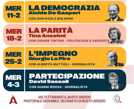 Lunedì 9 febbraio alle 20.45 a Stoà Incontro 18/19nni del decanatoRiflessione con tutti i ragazzi della città di Busto Arsizio, sul tema della scelta