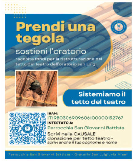 AIUTA LA TUA PARROCCHIA : Codice IBAN: IT 10 F 03069 09606 10000006 2310